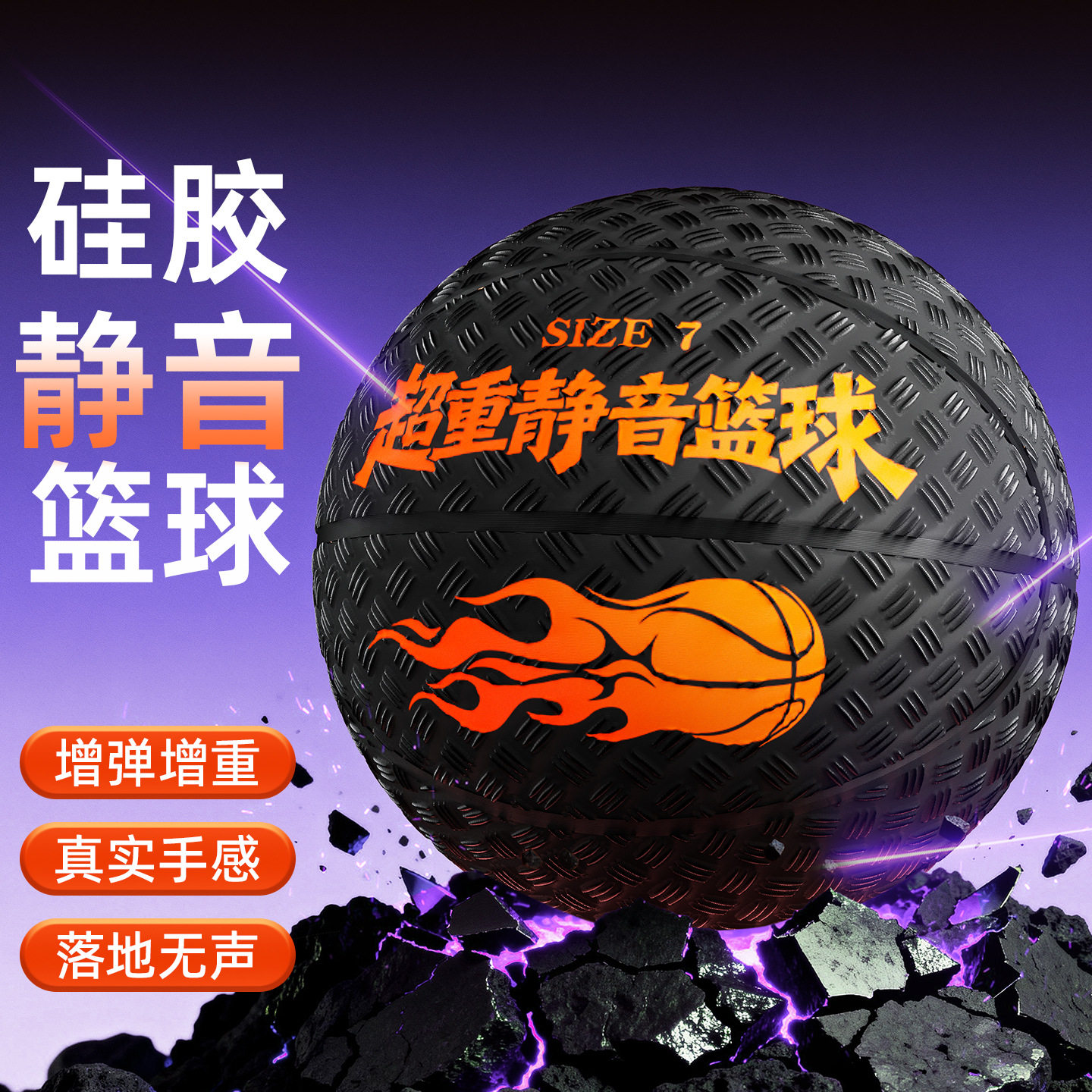 硅胶加重静音篮球儿童室内训练健身玩具7号5号静音球拍拍球海绵球
