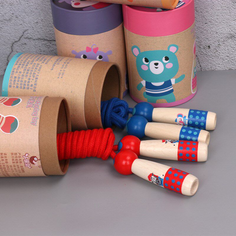 木质卡通动物可调节跳绳儿童健身玩具幼儿园用品木制宝宝桶装跳绳