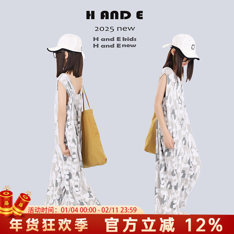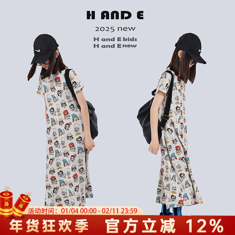 H AND E 原创童装2025夏季卡通印花人像连衣裙女童母女亲子装