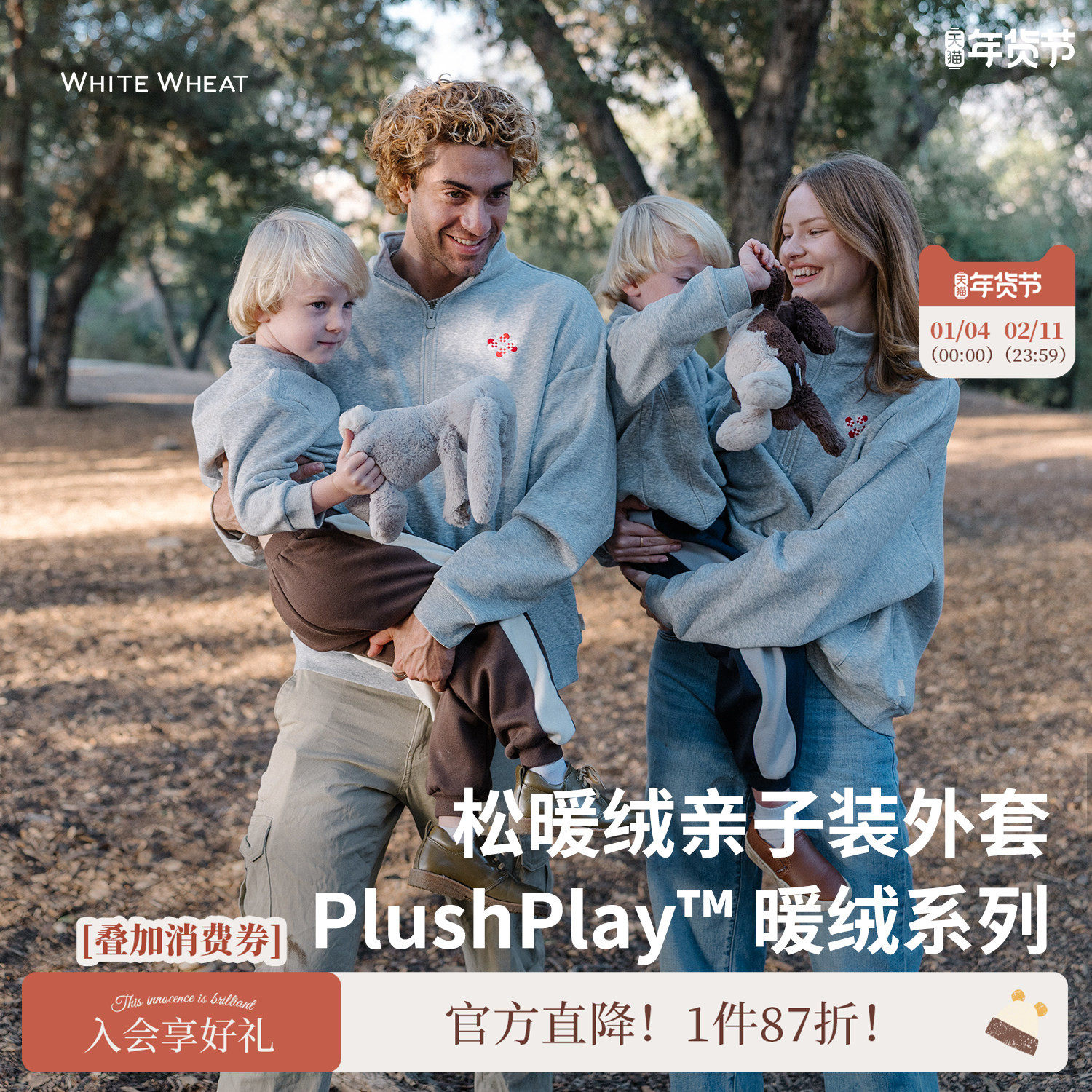whitewheat儿童2025冬季新款亲子装男女童刺绣上衣一家三口母女款