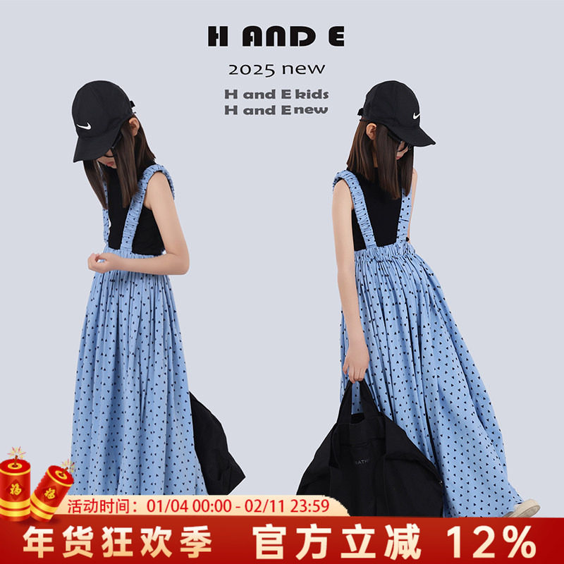 H AND E 原创童装2025夏季蓝色高级感背带连衣裙女童母女亲子装