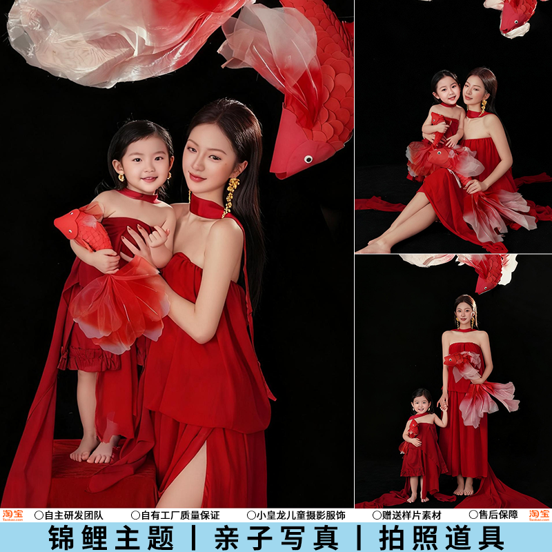 新年锦鲤母女亲子装锦鲤拍照道具新年主题氛围感写真影楼摄影服装