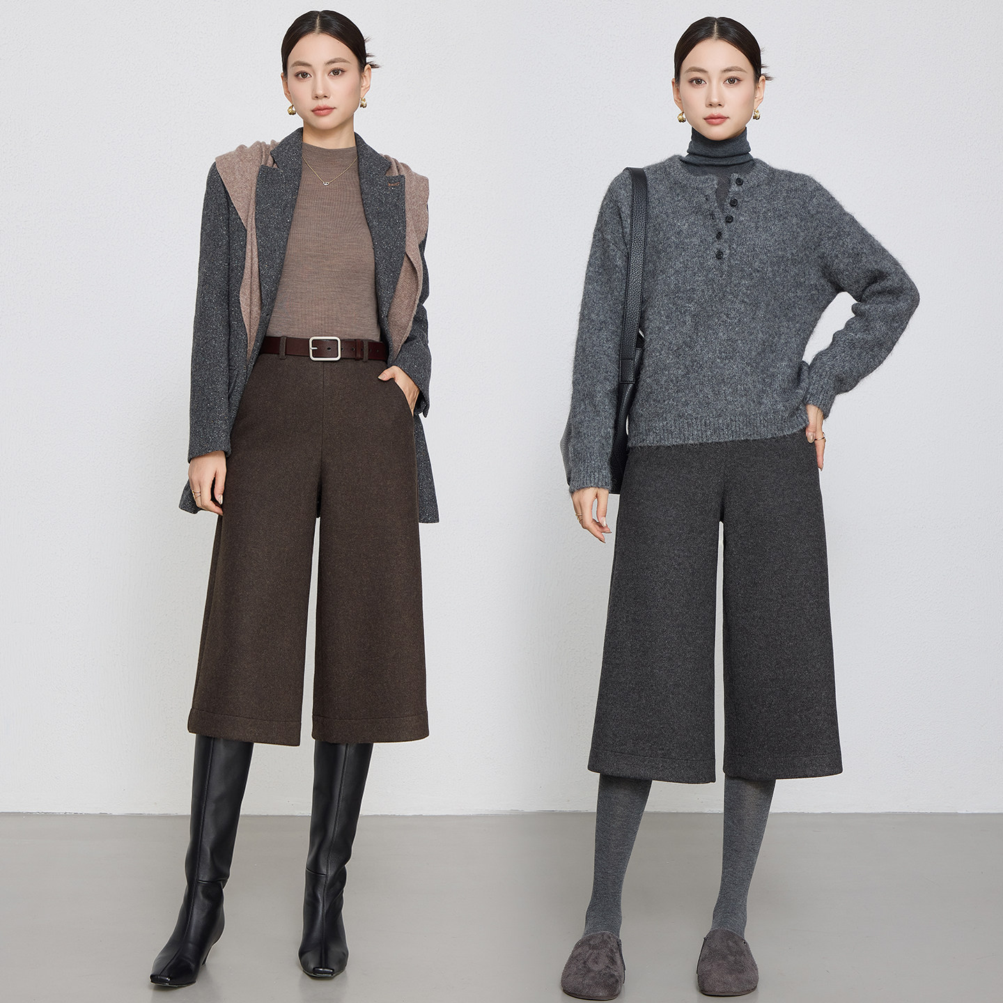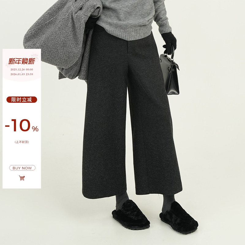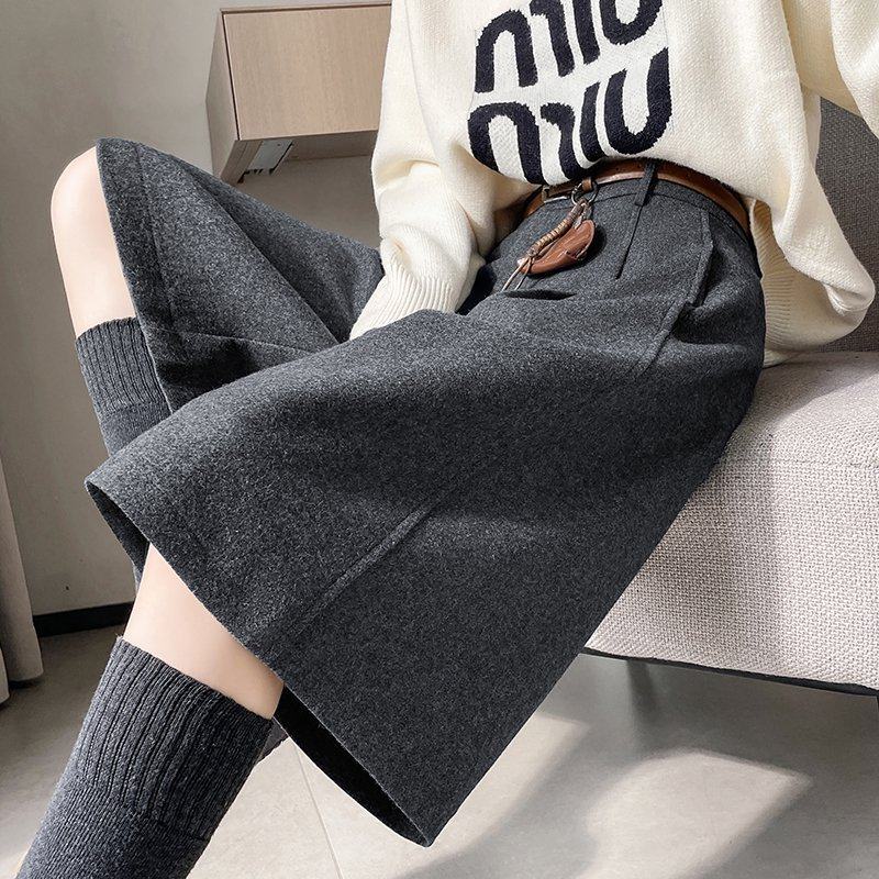 - 毛呢阔腿裤九分女冬 韩版 高腰