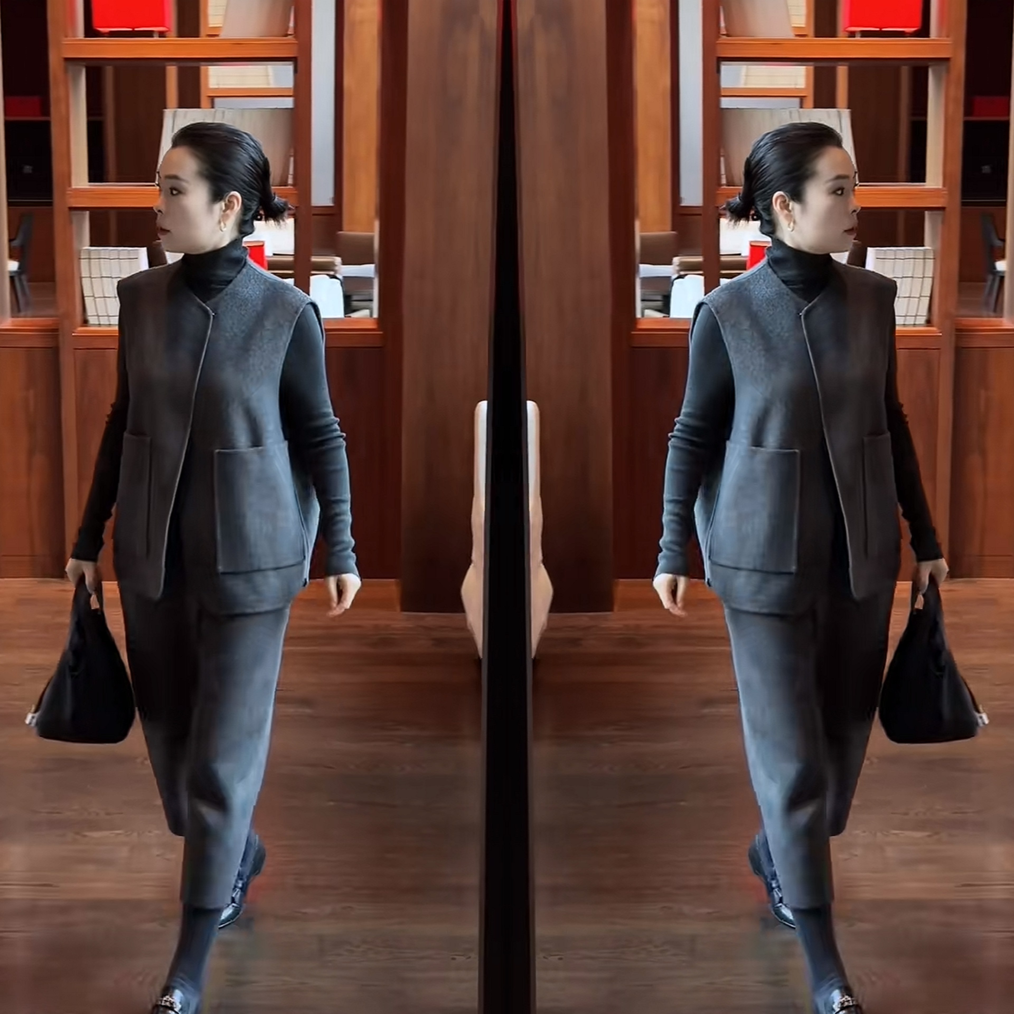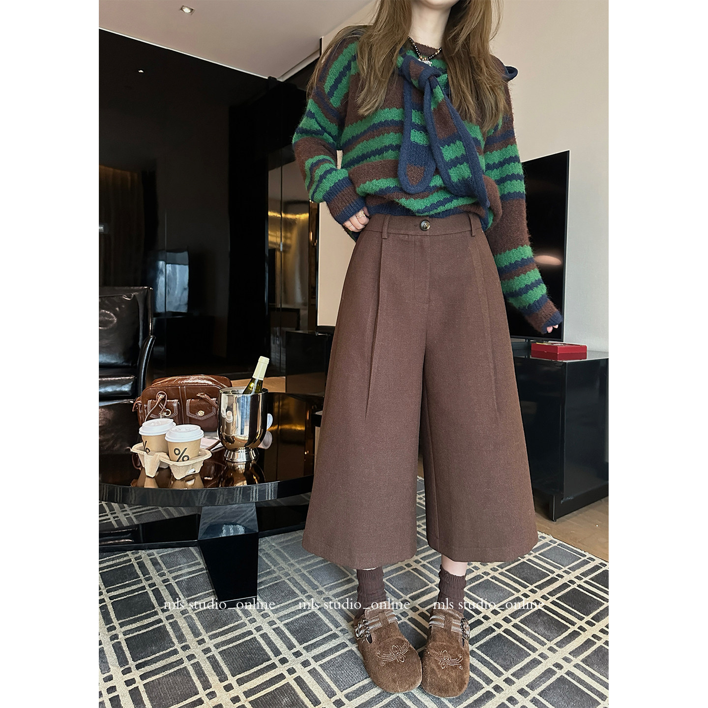 - 毛呢阔腿裤女秋冬九分韩版高腰