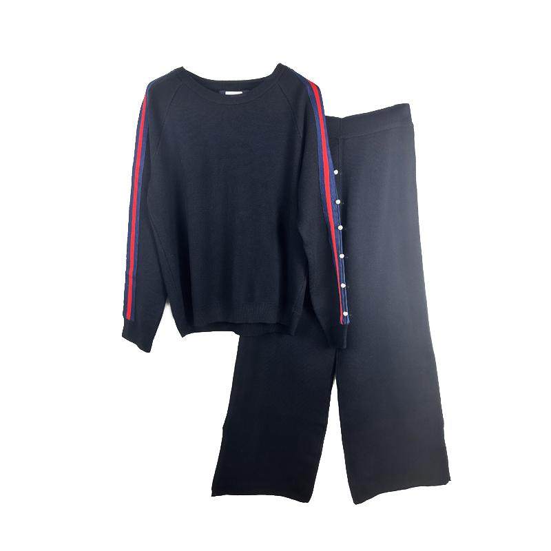 PEMPL·慵懒风休闲宽松斜肩圆领两穿针织罩衫女低腰直筒长裤套装