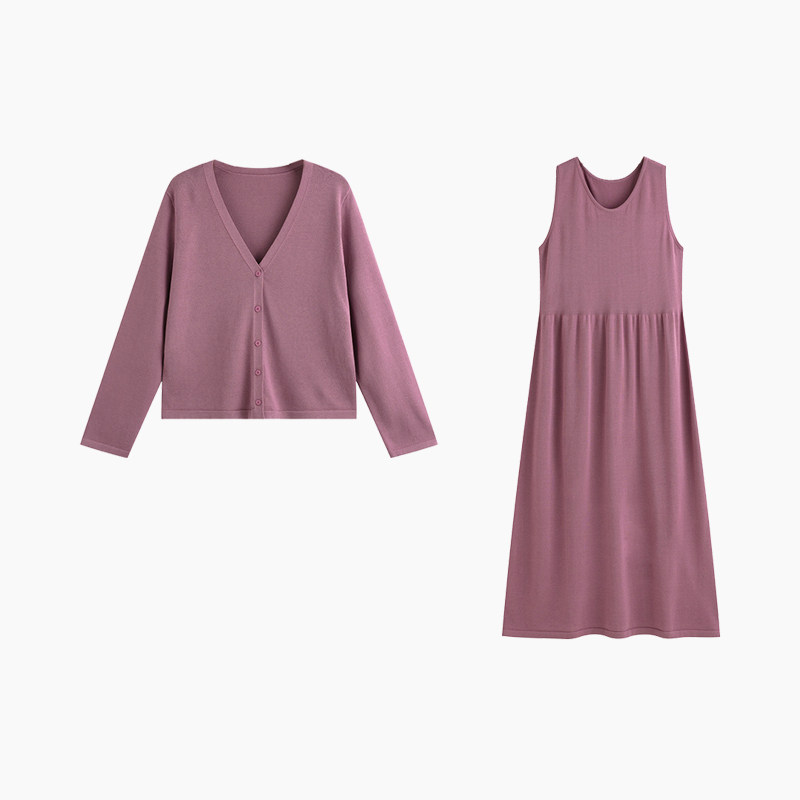 SUK 高智老钱!100%羊毛圆领背心针织衫百褶连衣裙宽松开衫套装女