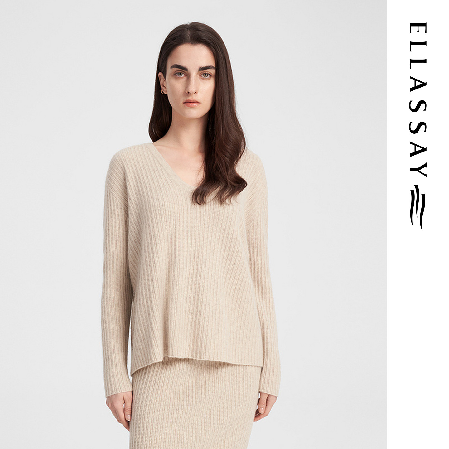 ELLASSAY歌力思秋季新款绵羊毛宽松针织套装女EWB343M00800