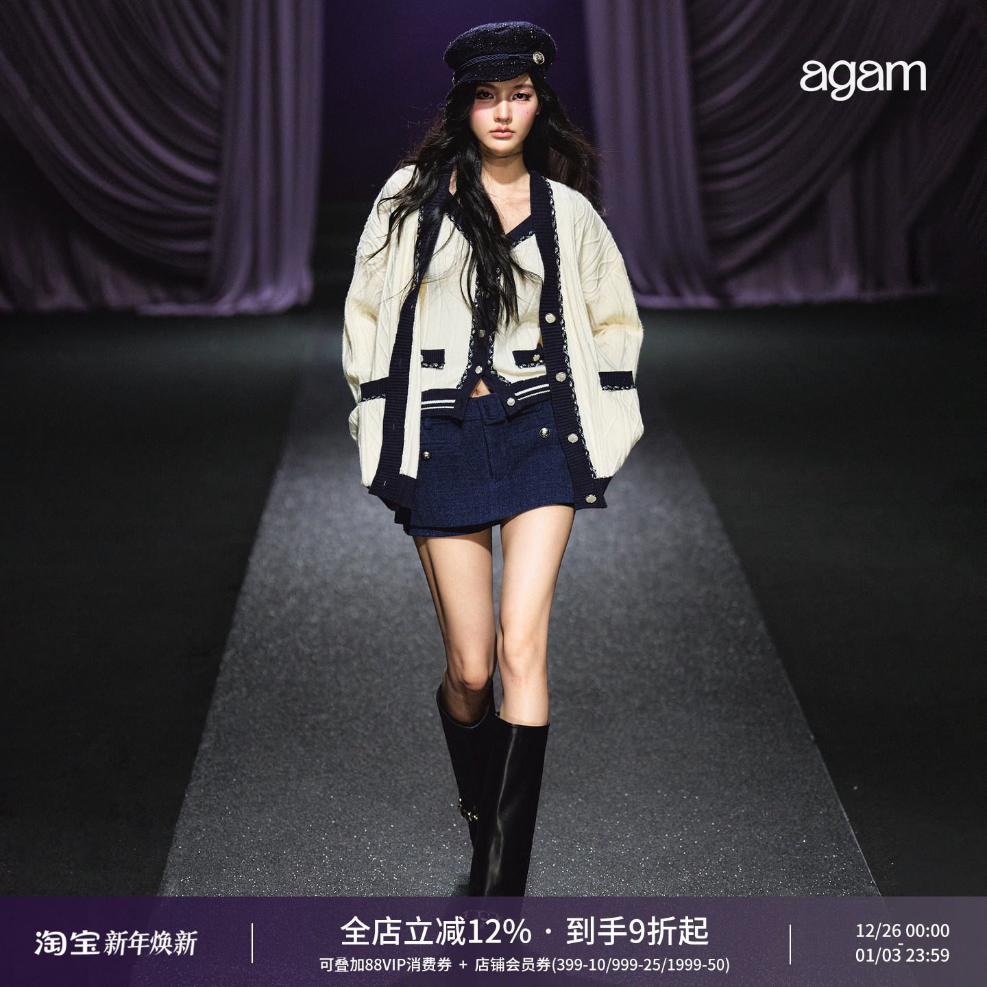 AGAM 软糯亲肤小香风撞色针织开衫女套装宽松高级感V领背心两件套