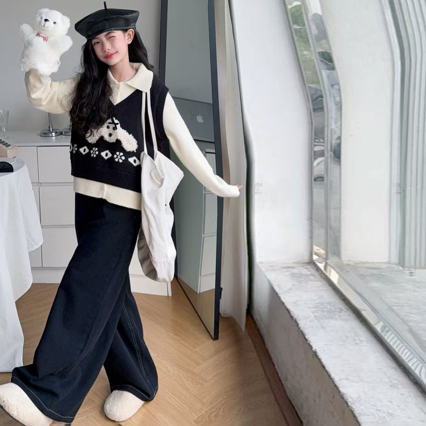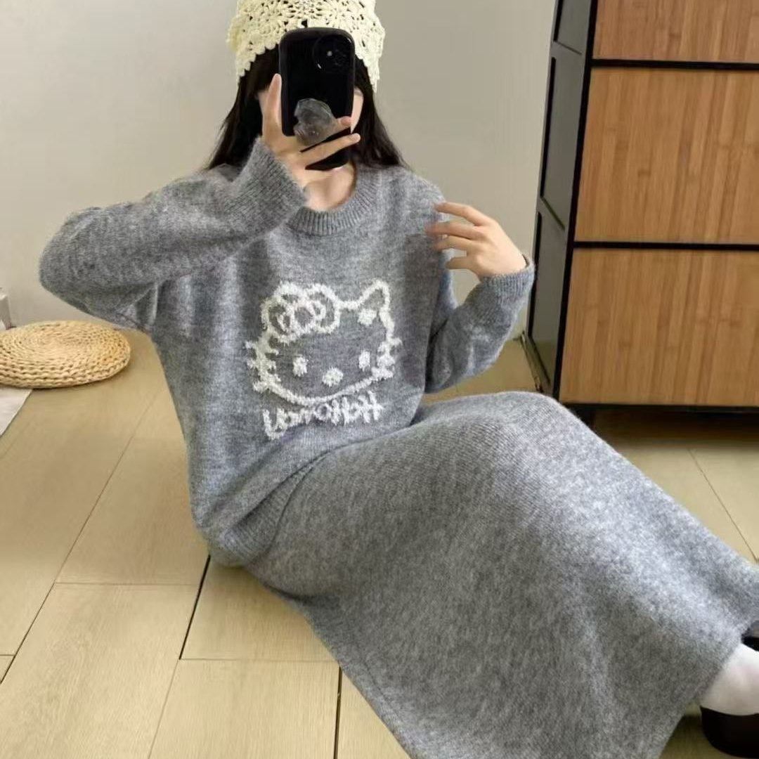 2025新款韩系可爱卡通长袖毛衣女2025秋冬高级感软糯宽松针织套装