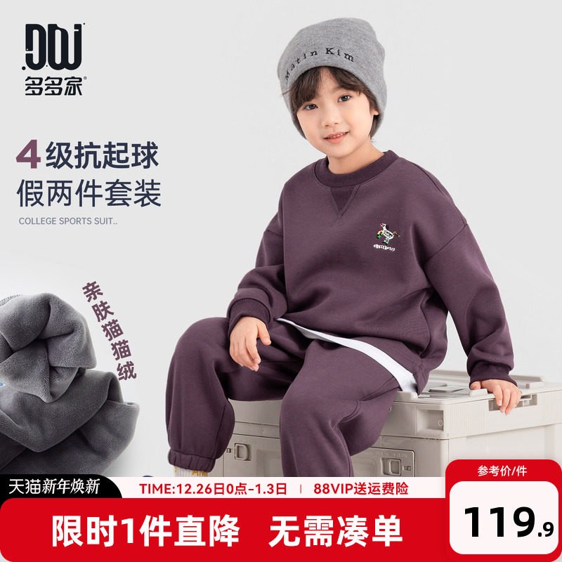 多多家男童运动套装加绒假两件2025秋冬季新款儿童保暖加厚两件套