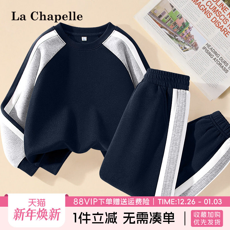 拉夏贝尔男童运动套装男孩蓝色潮酷插肩袖卫衣儿童春季休闲两件套