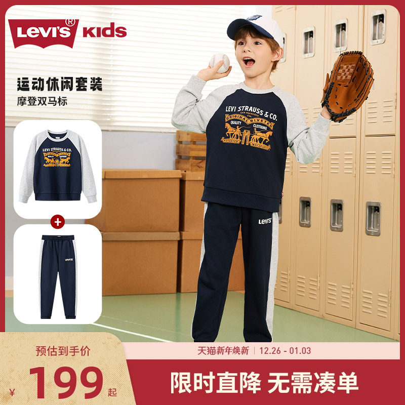 李维斯童装男童运动套装2025新款儿童套装两件套秋季大童卫衣卫裤