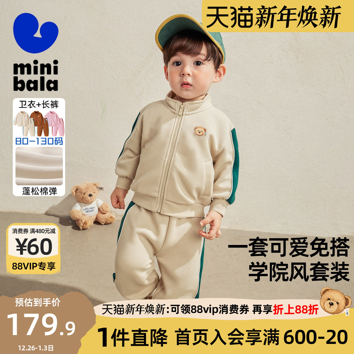 迷你巴拉巴拉男童运动套装2025秋季宝宝萌趣入园服学院风两件套潮