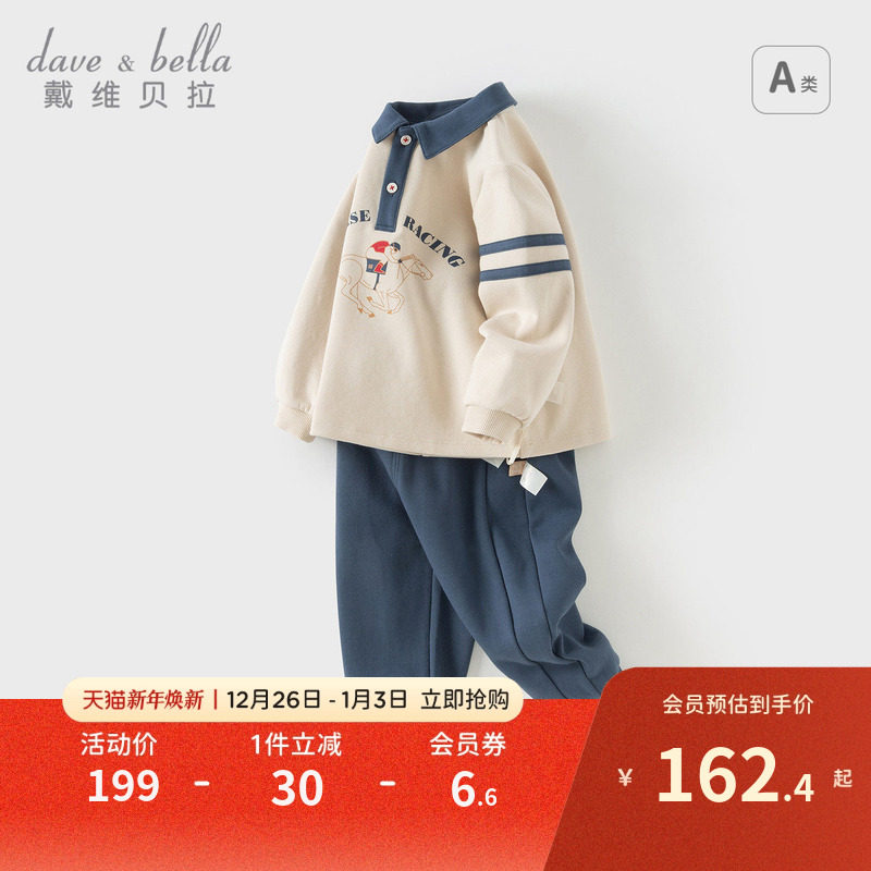 戴维贝拉男童运动套装2025秋装新款儿童polo衫裤子两件套宝宝衣服