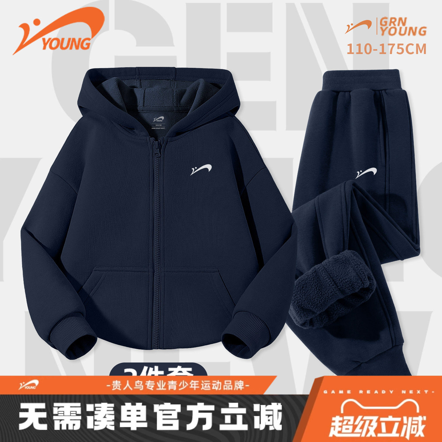 贵人鸟童装男童运动套装2025新款大童秋冬款加绒衣服儿童冬季卫裤