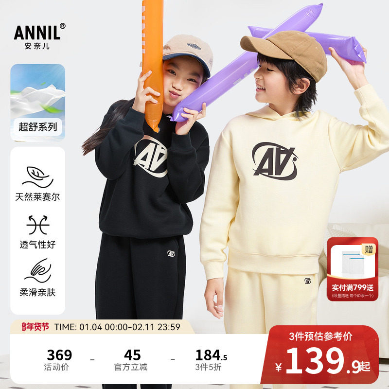 gugumini童装2025秋冬男女童学生学院风全棉薄绒运动直筒裤套装