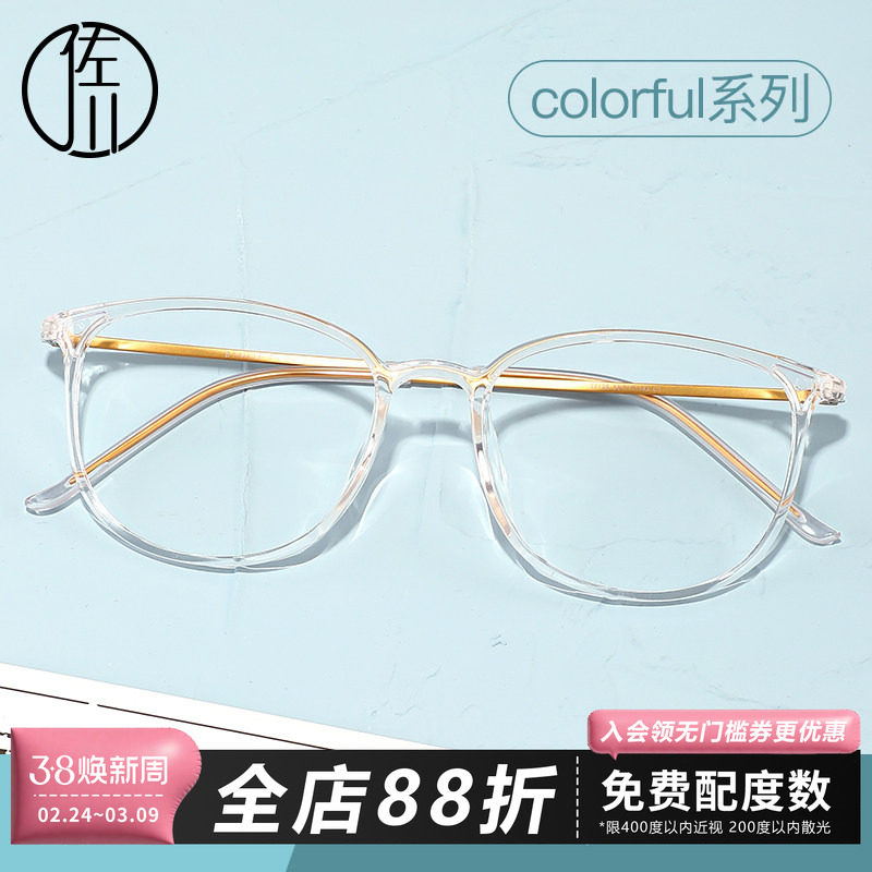 佐川透明眼镜框女韩版潮网红款圆脸超轻纯钛眼镜框男近视可配度数