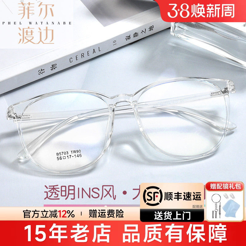 菲尔渡边透明眼镜框女 大框素颜镜配防蓝光韩版潮近视镜架女5703