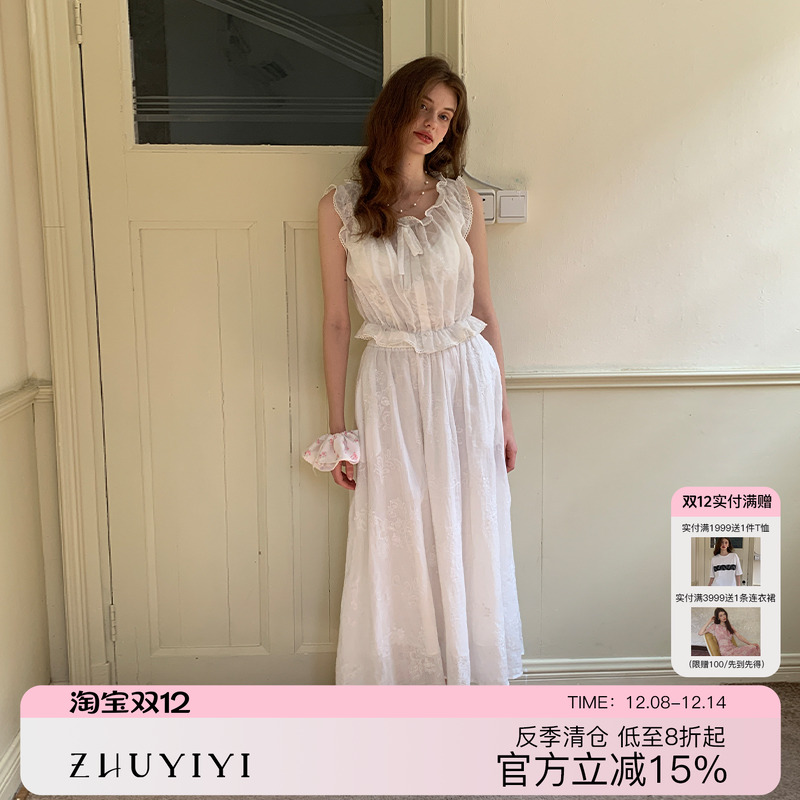 竹依依法式复古宫廷风南法白色刺绣上衣+半裙两件套套装裙女新款