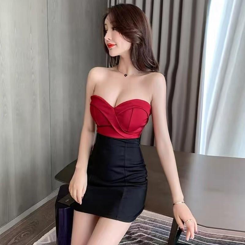 夜 店女装性感抹胸包臀裙夜场气质小礼服紧身低胸丝绒裹胸连衣裙