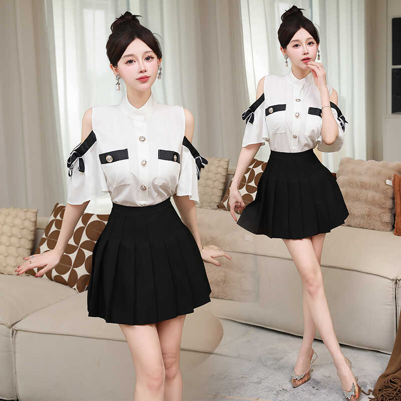 夜场女装性感衬衫套装2025新款按摩气质百褶裙足疗足浴技师工作服