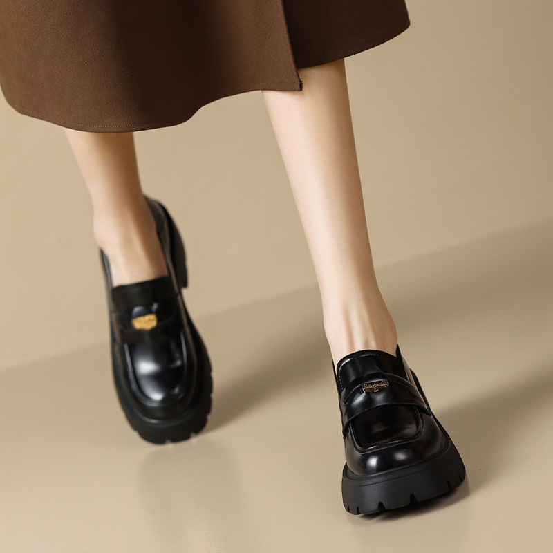 复古英伦风小皮鞋女2025秋季新款学生韩版百搭学院厚底增高乐福鞋