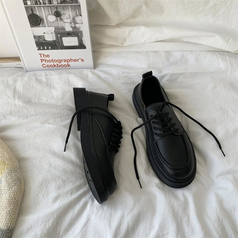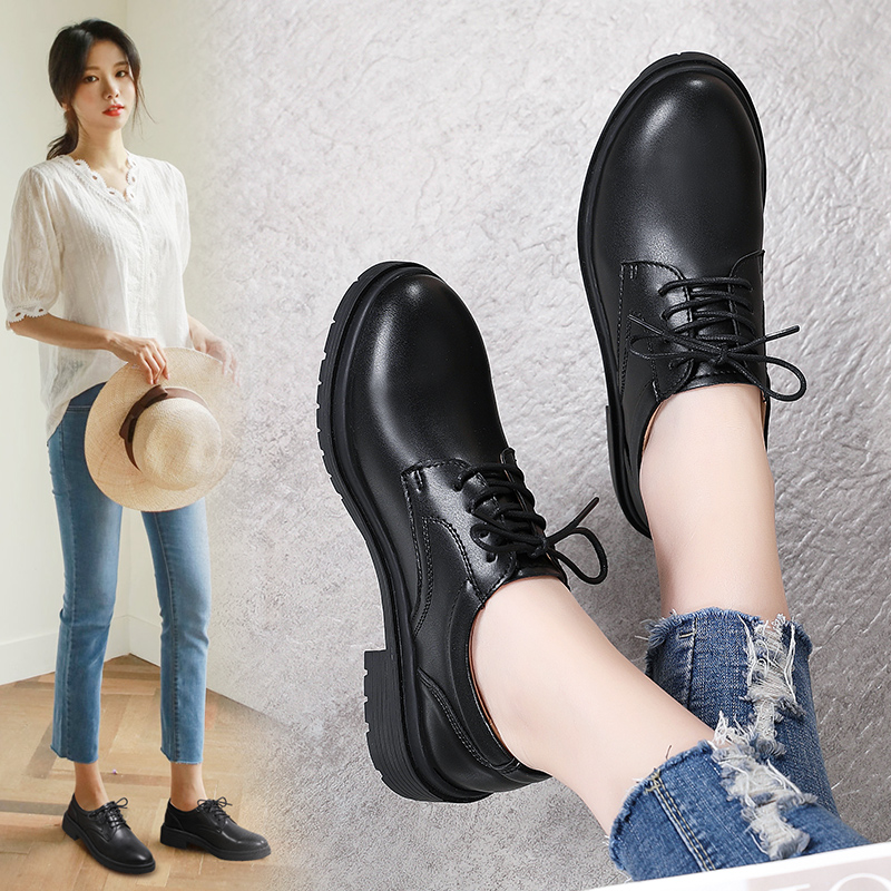2025韩版百搭春季圆头系带复古小皮鞋女夏学生英伦平底学院风单鞋
