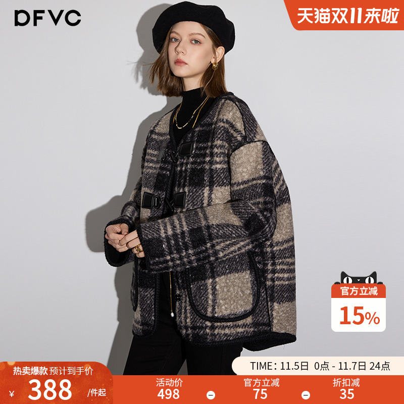 dfvc韩版短款格子毛呢外套女2025年冬季新款宽松小个子呢子大衣厚