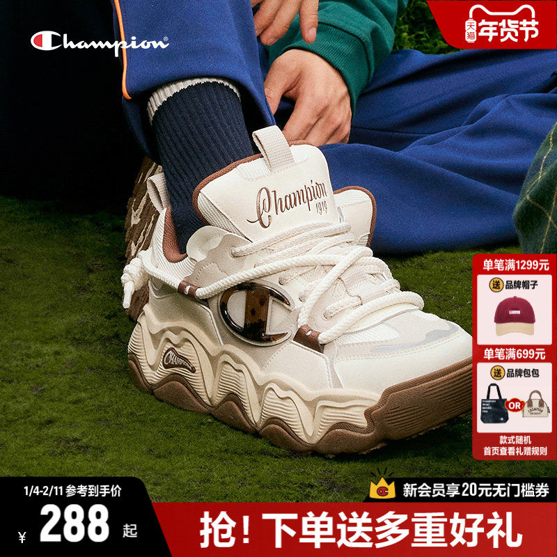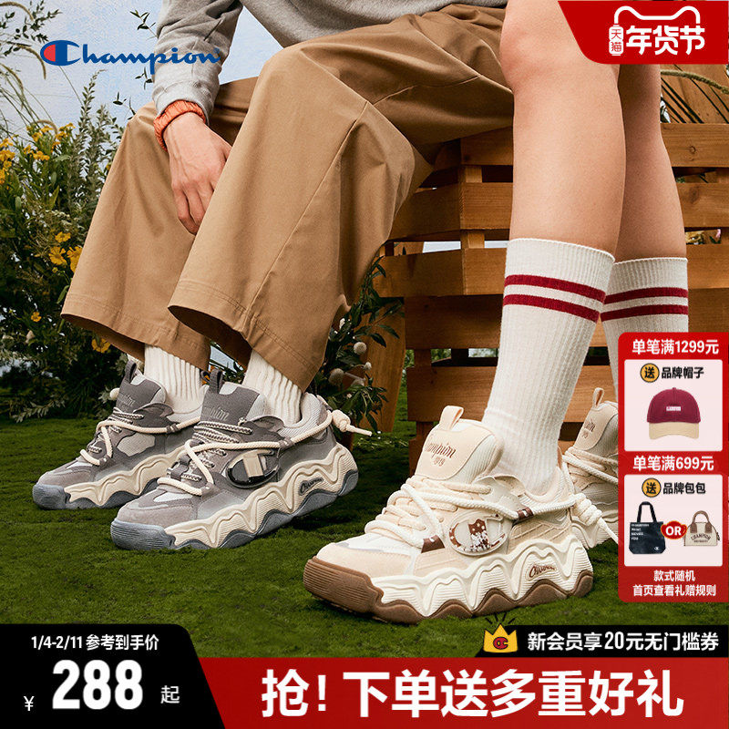 Champion冠军绑带面包鞋女厚底板鞋2025年秋冬新款情侣休闲运动鞋