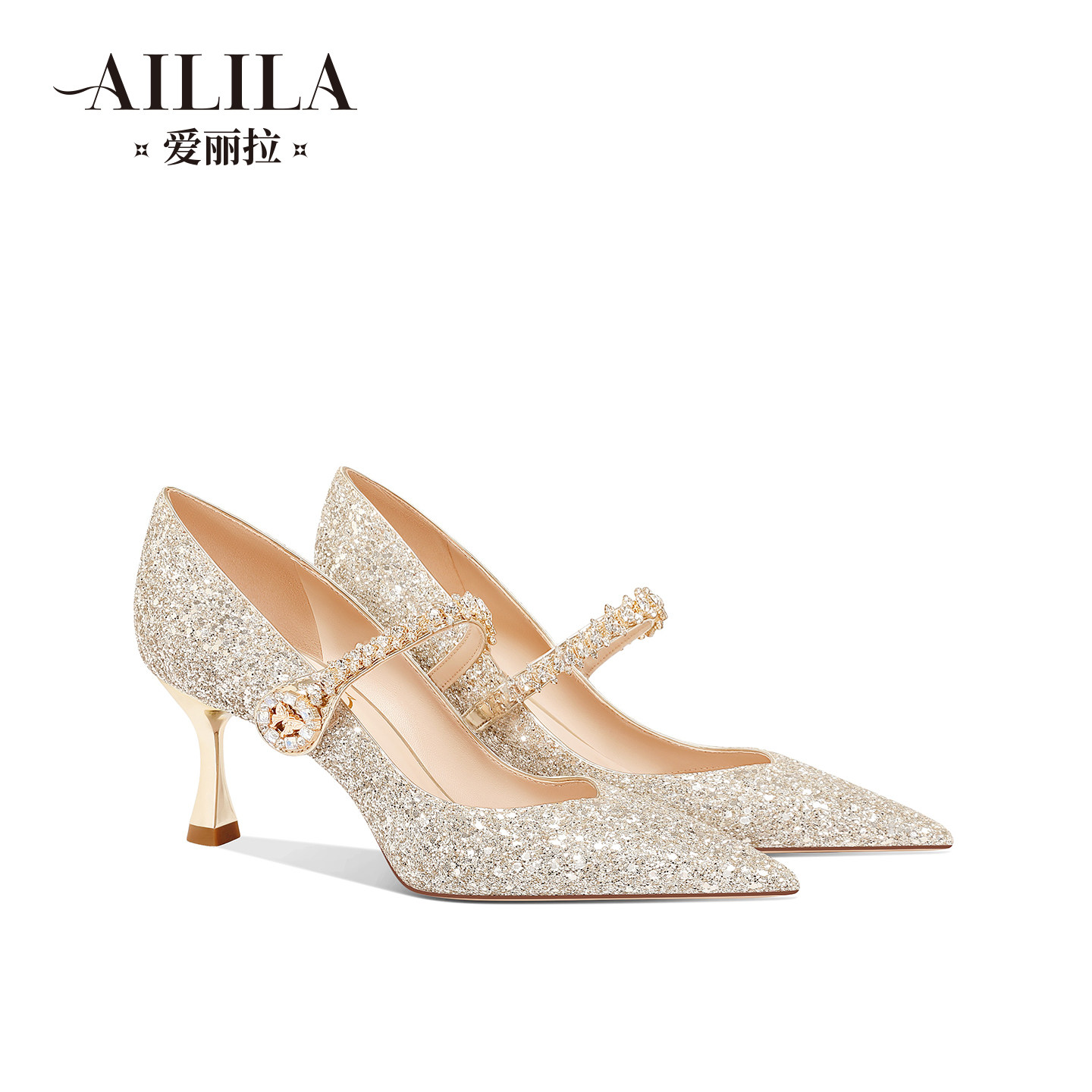 爱丽拉金色绑带婚鞋女2025秋季新款日常婚纱两穿新娘高跟鞋不累脚