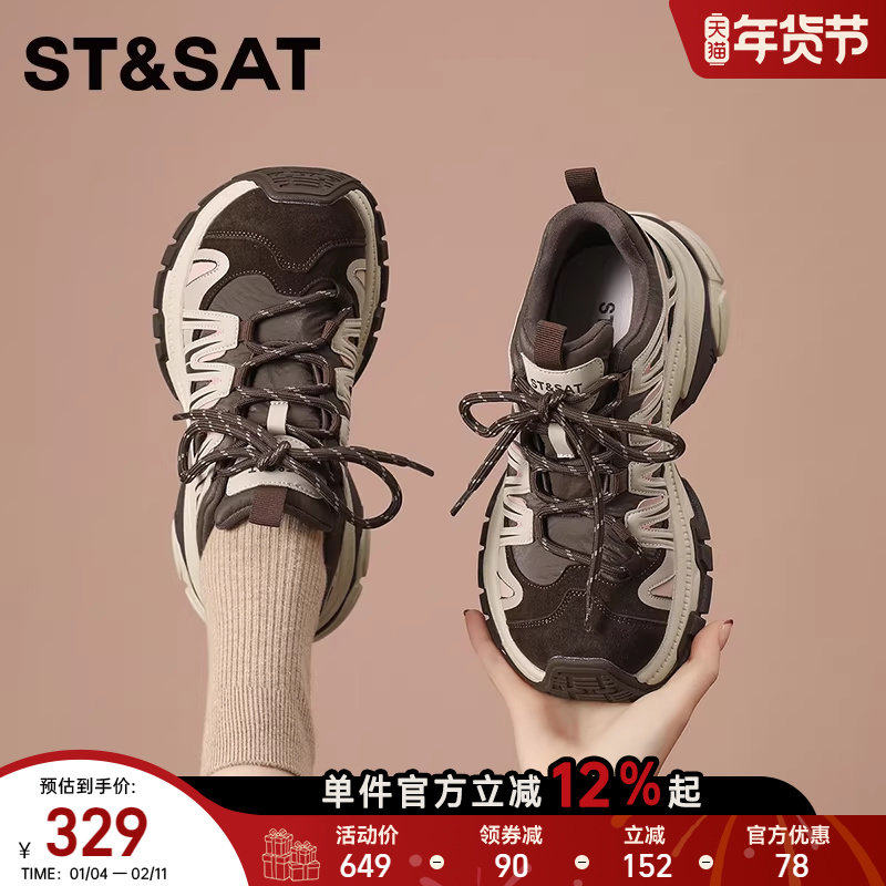 星期六2025年秋季老爹鞋女百搭厚底增高运动鞋透气休闲跑步鞋绑带