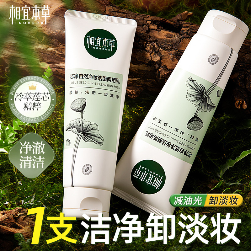 相宜本草洗面奶女深层清洁卸妆芯净自然净妆洁面两用乳130g控油
