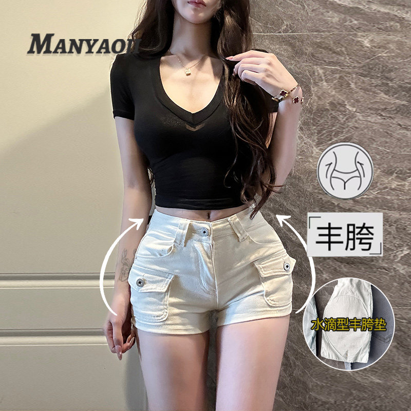 辣妹奶白丰胯纯欲低腰牛仔短裤2025冬季新款修身显瘦百搭工装热裤