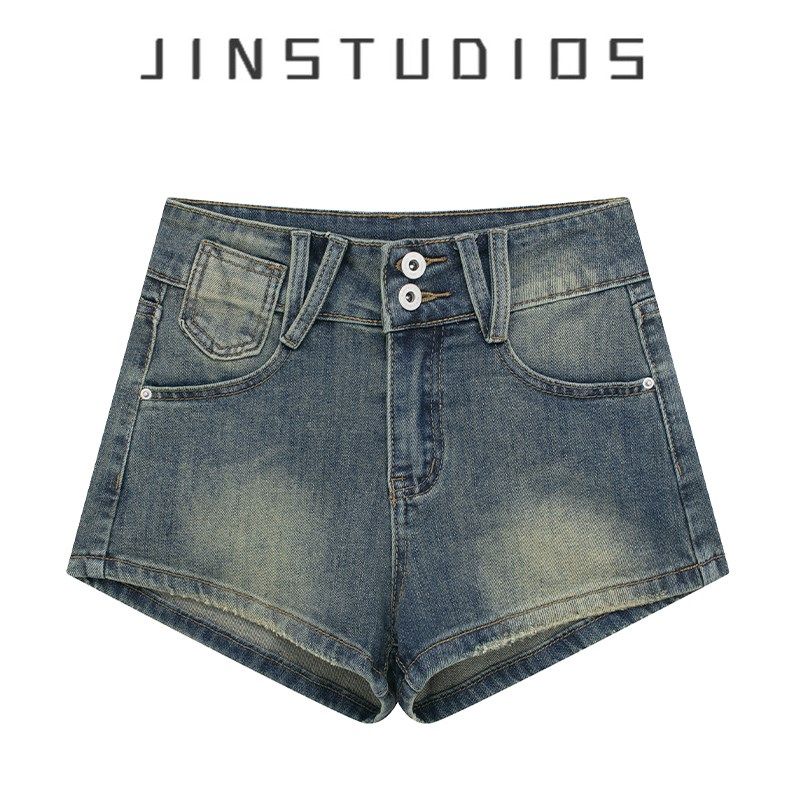 2024夏个性高腰两粒扣做旧磨白牛仔短裤显瘦显腿长百搭辣妹风热裤
