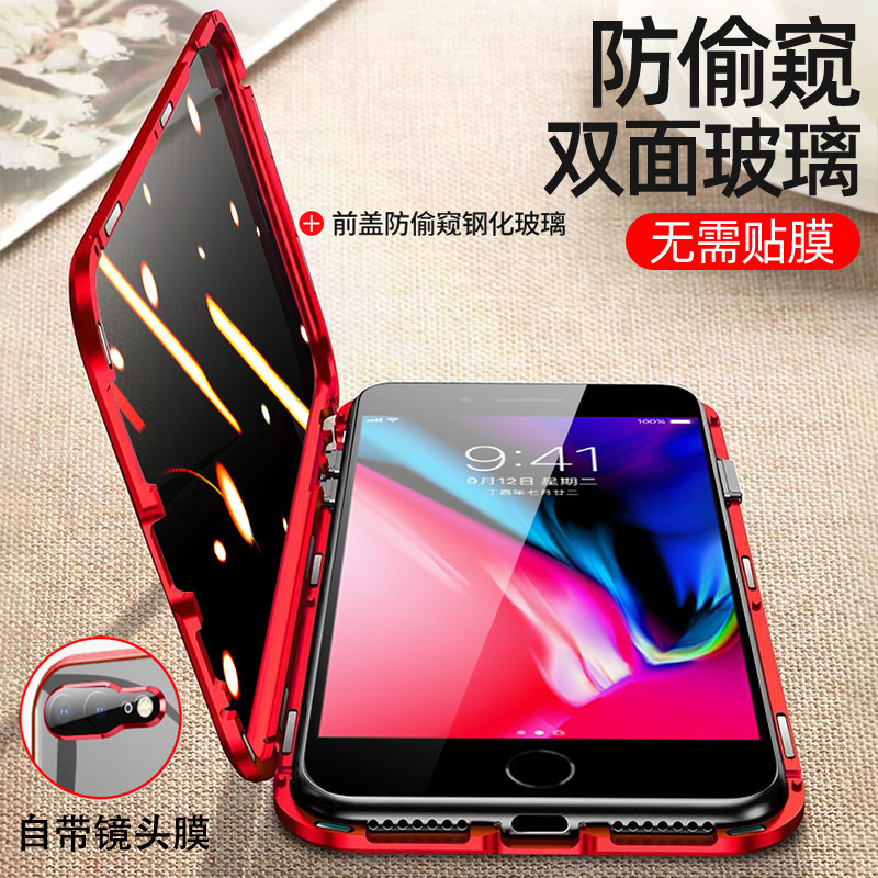 适用苹果8plus防偷窥手机壳iphone7plus全包se3磁吸xsmax双面钢化玻璃套xr保护镜头6s防摔透明xs防摔潮男女款