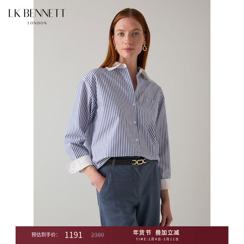 lkbennett蓝色条纹衬衫女2025年夏季新款休闲宽松撞色中长款外套