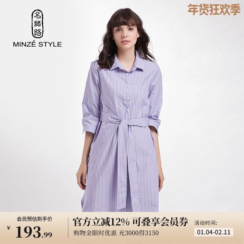 蓝色条纹衬衫女中长款[第8名]