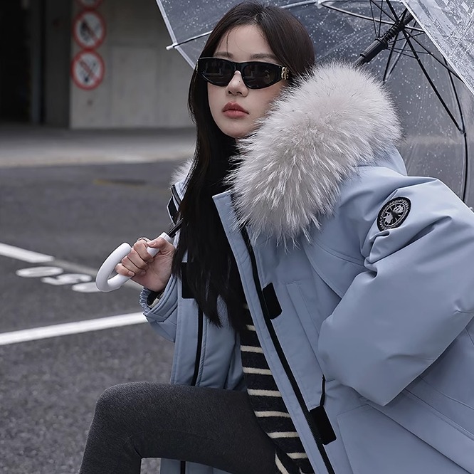 - 貉子服女羽绒款毛领中长