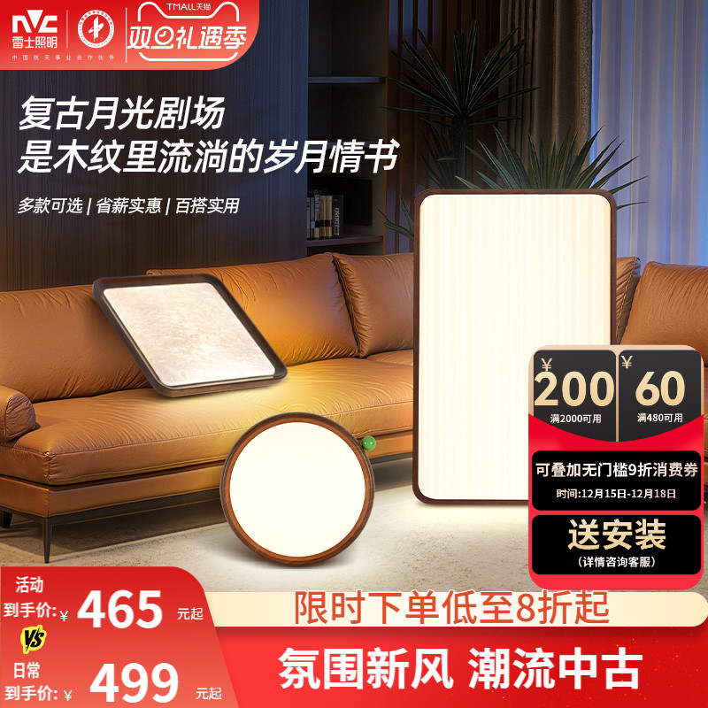 箭牌中古无缝吸顶灯日式胡桃木护眼客厅吸顶灯超薄客厅灯全屋组合