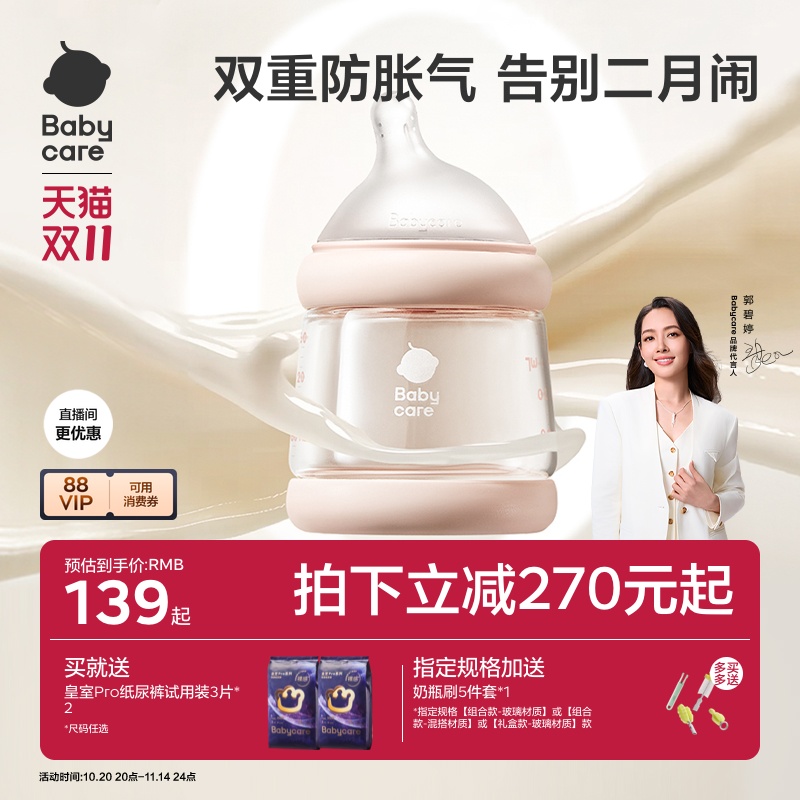 贝亲玻璃奶瓶0到6个月婴儿新生防胀气防呛奶瓶奶嘴宝宝官方旗舰店