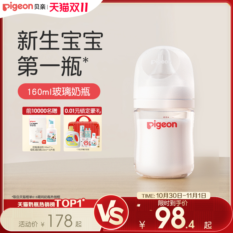 Pigeon贝亲婴儿宽口径玻璃奶瓶新生婴儿奶瓶奶嘴0到6个月以上宝宝