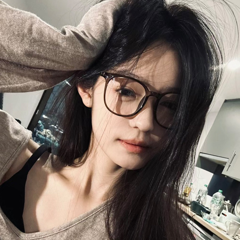 早八素颜!冷茶色温柔复古小众可配度数近视眼镜防蓝光平光眼镜框