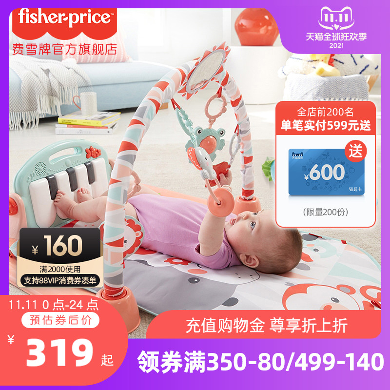 费雪婴幼儿多功能轻便摇椅踢踏钢琴健身器宝宝音乐声光海马爬行毯