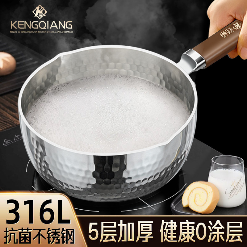 一人食小锅316L不锈钢奶锅无涂层宝宝辅食锅家用早餐热奶煮泡面锅