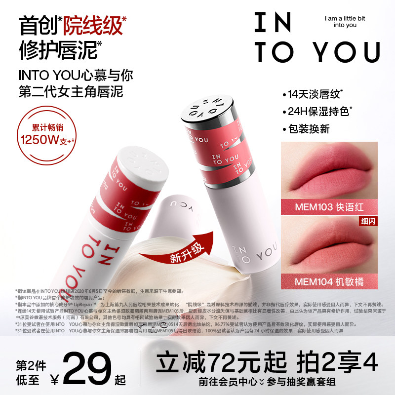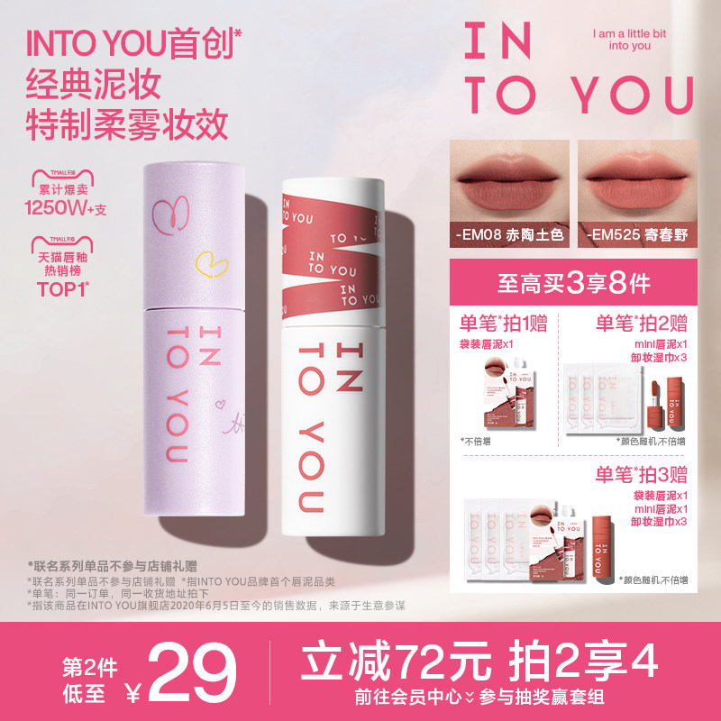 INTO YOU第二代女主角唇泥雾面哑光丝绒口红唇釉唇彩唇膏素颜唇颊