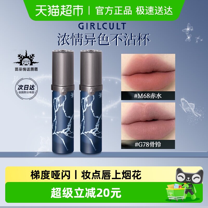 Girlcult苗巫系列情话唇霜M68赤水不沾杯不掉色唇泥哑光雾面口红