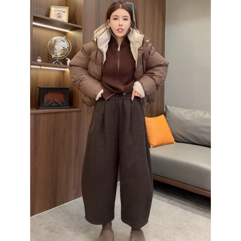 - 毛呢裤女 秋冬 哈伦裤