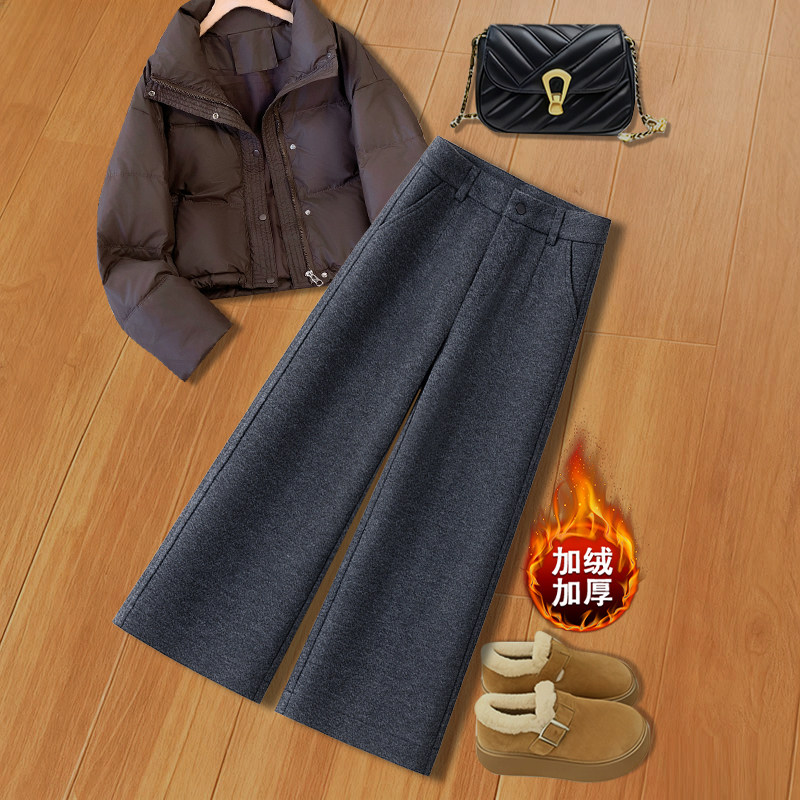 秋冬季加绒毛呢阔腿裤休闲女新款高腰显瘦九分小个子垂感直筒裤子