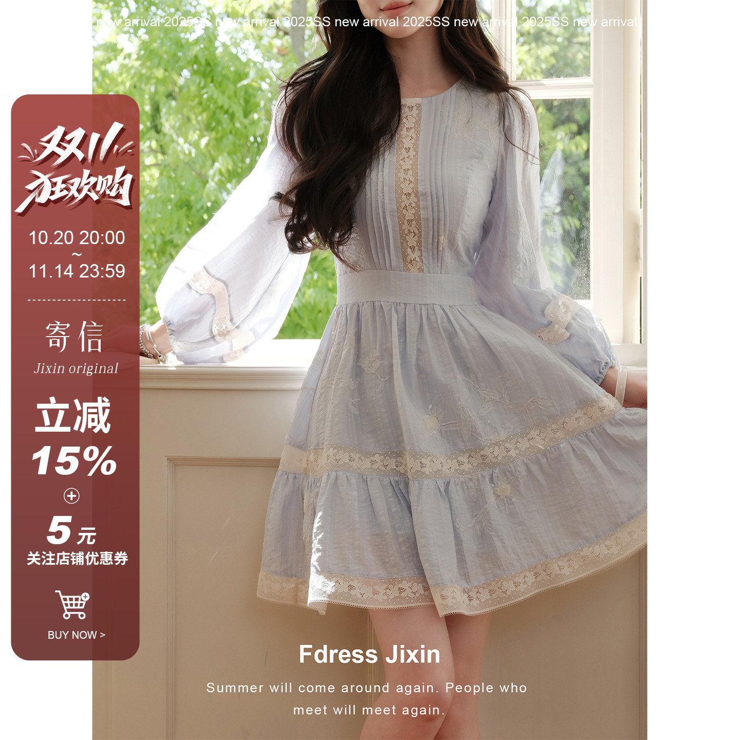 衣纱布菲珠蔓 仙女蕾丝绣花连衣裙2025春女装娃娃领收腰裙子