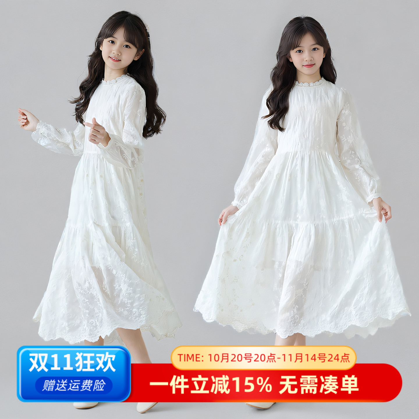 女童刺绣连衣裙秋季新款长袖绝美仙女风公主裙儿童洋气生日礼服裙